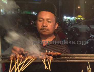 Pak Salam senyum sesaat, lalu mengedar pandang dengan diam. “Sate, Bang,” pesannya. Pelanggan lain yang sedang nonton bola hanya melirik Pak Salam sekilas.