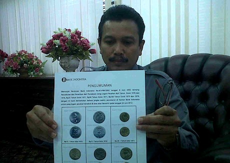Kepala Kantor BI Zulfan Nukman kepada Pikiran Meredeka mengatakan uang pecahan logam itu ditarik berdasarkan peraturan Bank Indonesia, Nomor 4/3/PBI/Tahun 2002, tentang pencabutan dan penarikan uang logam.