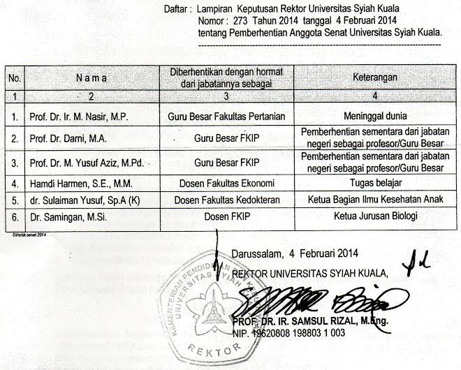 Darni Diberhentikan dari Senat Unsyiah