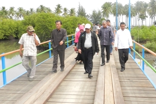 Setelah jembatan itu rampung, warga tak lagi harus menyebrang sungai untuk menuju pantai. Nelayan jadi mudah menabatkan boat dan sampanya. Jembatan itu juga menjadi tempat pendaratan ikan. “Setelah jembatan ini ada, ramai orang yang berkunjung ke pantai, apa lagi kalau hari minggu. Malah sering ada artis yang shooting video klip di sini,” lanjut ibu dua anak itu.