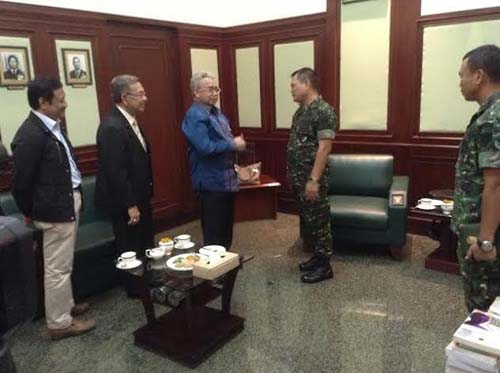 Gubernur Aceh Zaini Abdullah berbincang dengan Kasad Letnan Jenderal TNI Budiman di Markas Besar TNI Angkatan Darat Jln. Medan Merdeka Selatan, Jakarta, Selasa (25/03/2014). [foto Ist]