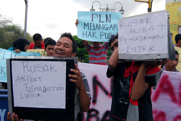 Mahasiswa menuntut PLN mengganti rugi peralatan elektronik yang rusak akibat pemadaman bergilir.[Antara | Ampelsa]