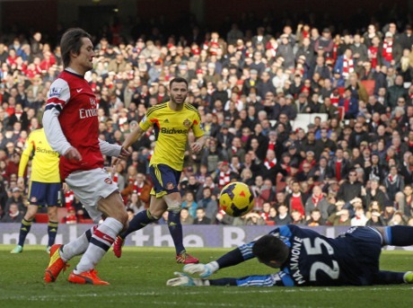 Arsenal menang telak 4-1 atas Sunderland di Emirates Stadium, Sabtu (22/2/2014) malam WIB di lanjutan Liga Inggris. Gol-gol ‘Meriam London’ dipersembahkan oleh Olivier Giroud (2 gol), Tomas Rosicky, dan Laurent Koscielny, yang hanya mampu dibalas oleh satu gol Emanuele Giaccherini.