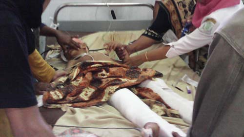 “Pasien harus segera dirujuk ke rumah sakit luar daerah untuk dioperasi. RS kita keterbatasan fasilitas seperti CT Scan dan peralatan lain,” kata dr. Aslinudin, Sp.B, “Kondisi pasien mengalami patah tulang tengkorak dan dua tulang paha kaki.”