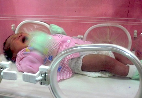 Bayi yang ditemukan warga Juli Setuy dirawat di ruang perinatologi RSU dr Fauziah, Jumat (6/4).(Pikiran Merdeka/Joniful Bahri)